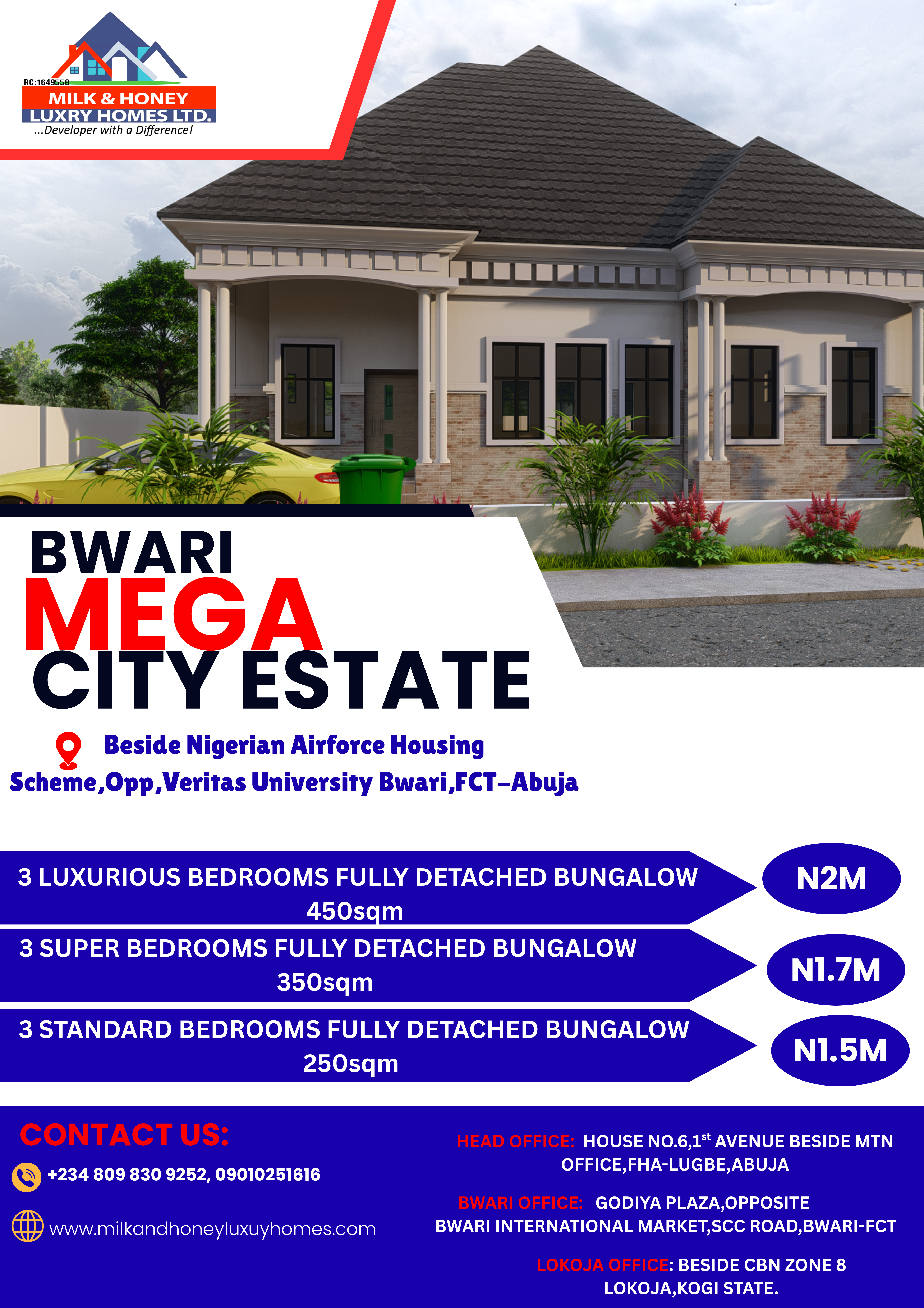 Opposite A2 base Event centre FHA Lugbe Abuja